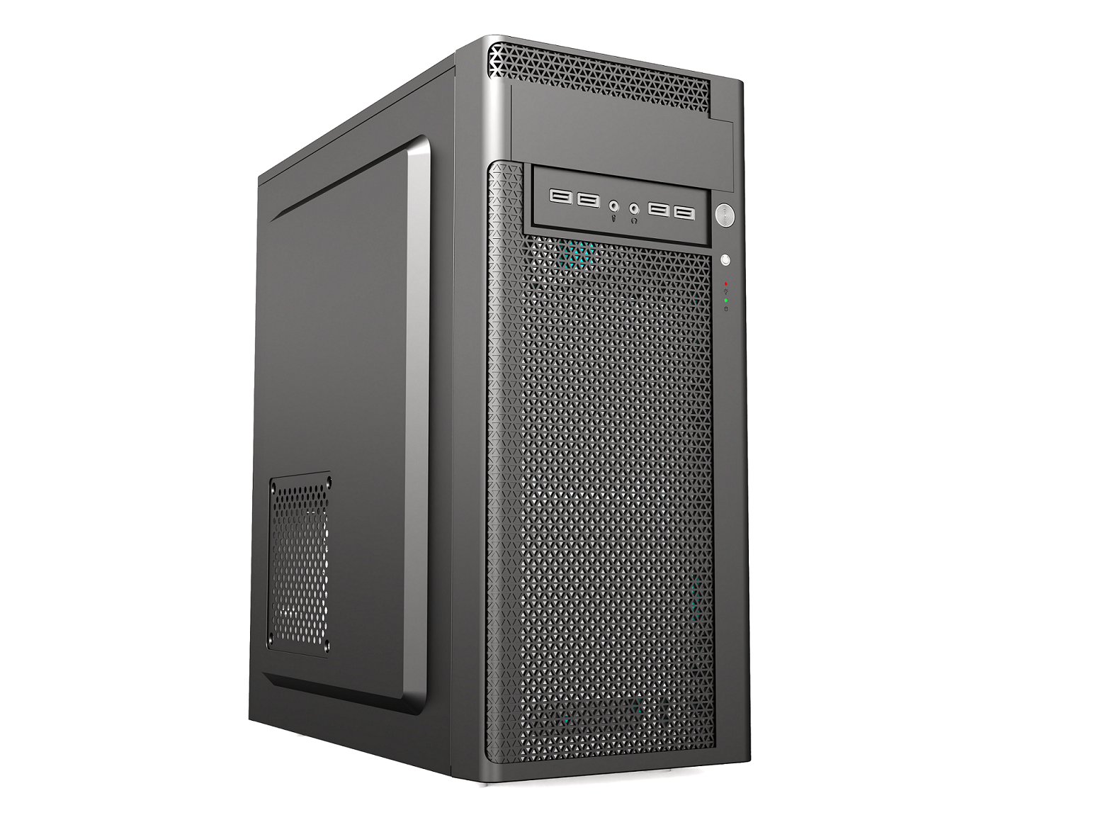 Pre-equipped with a reliable 500W ATX power supply unit, the 1540 PC case is ready for high-performance setups. The case provides ample airflow with up to 4x120mm fan mount locations, ensuring your system stays cool during intense workloads or gaming sessions. The front panel showcases a minimalistic yet stylish design, incorporating user-friendly connections like 2x USB 2.0, 1x USB 3.0, and audio ports, giving you convenient access without compromising on aesthetics.