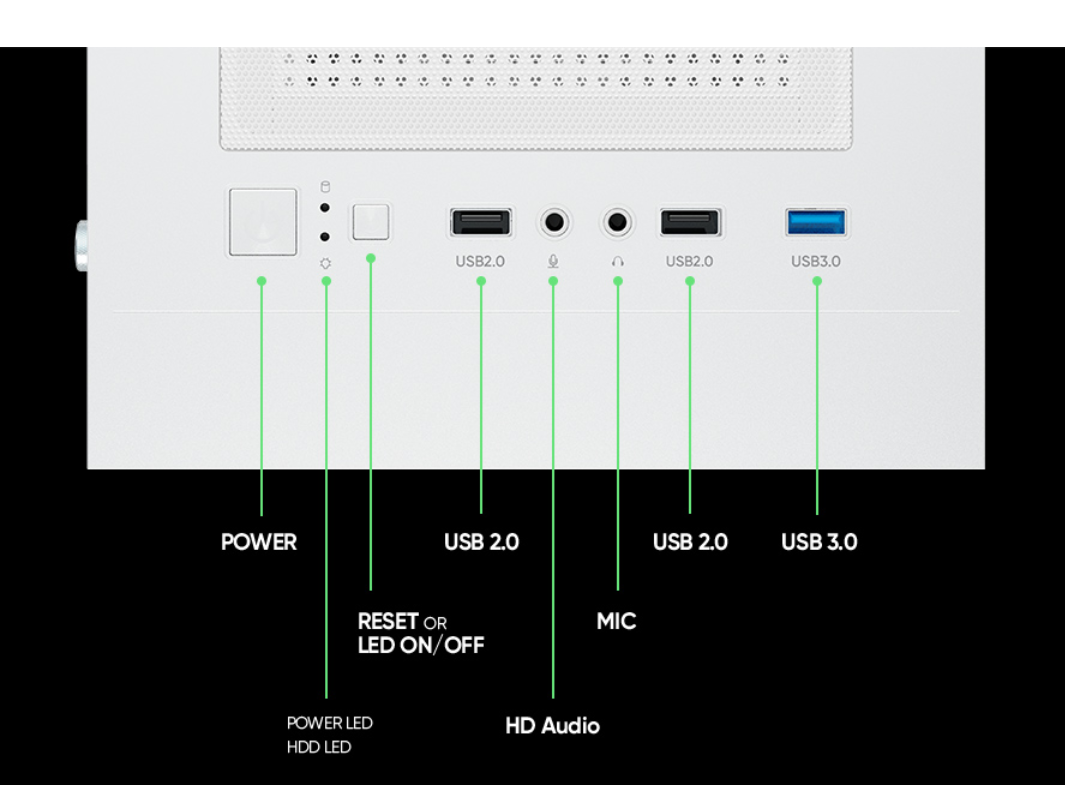 USB 3.0 ×1, USB 2.0 ×2, HD Audio & Microphone