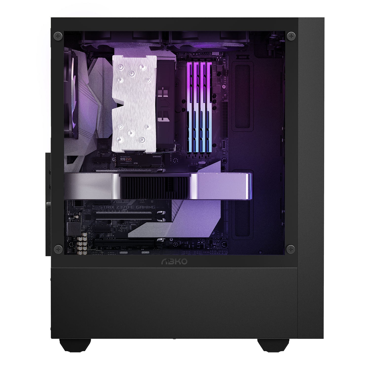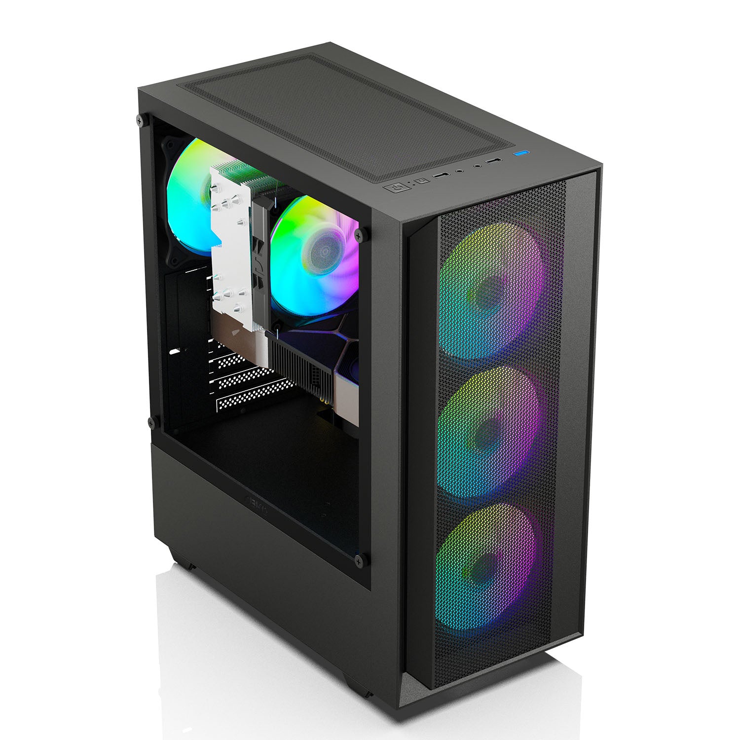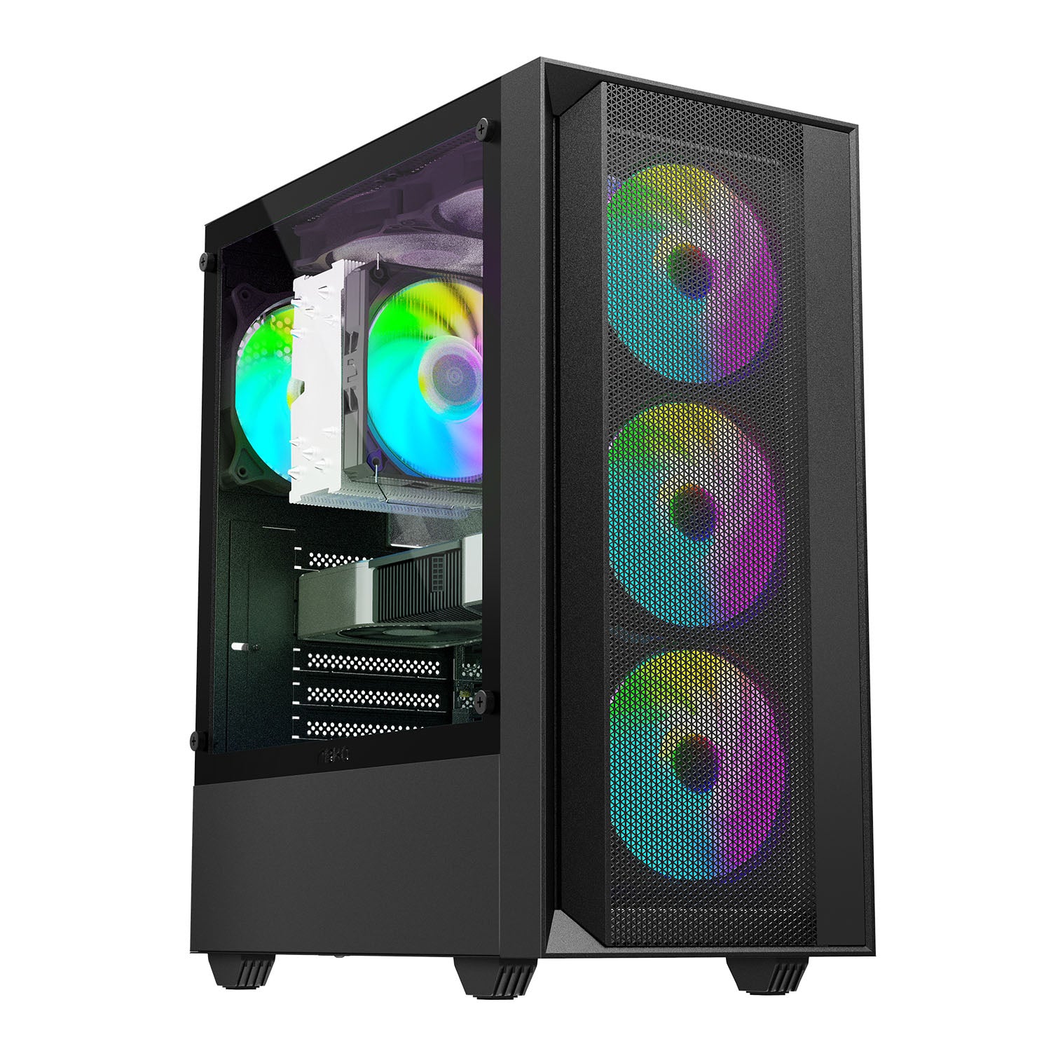 Sleek, durable design: ABS mesh front enhances airflow; full-sized tempered glass side panel adds a premium feel.