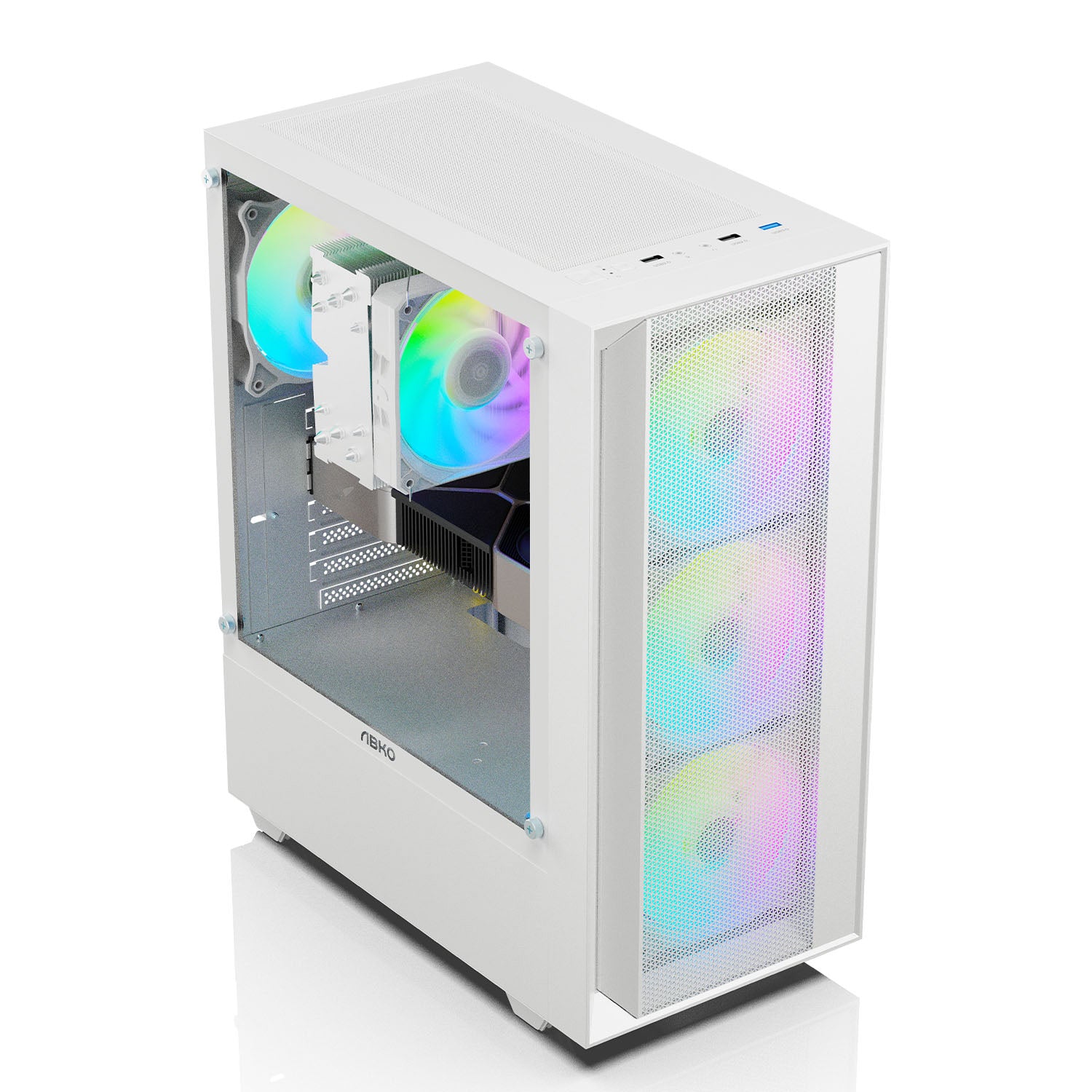 Stylish and durable design: ABS mesh front for enhanced airflow and tempered glass side panel for a sleek, modern look.