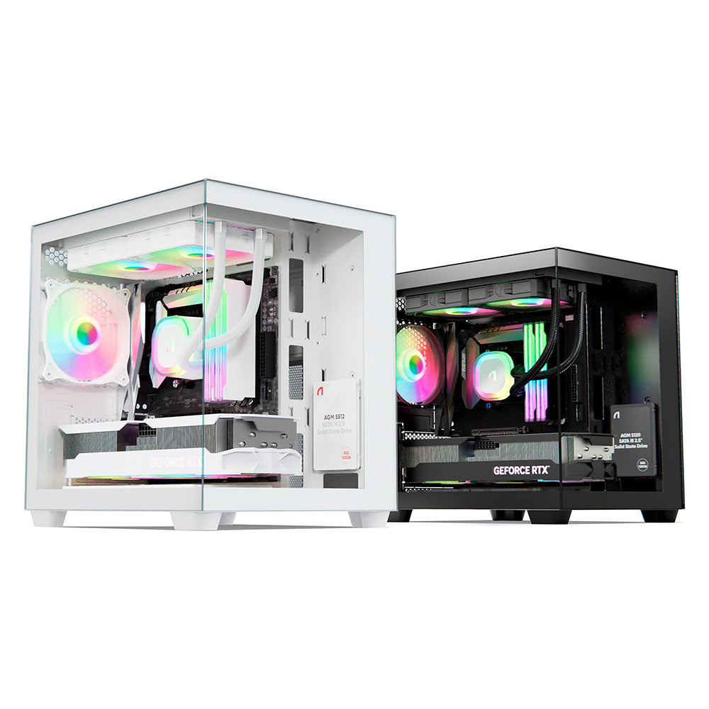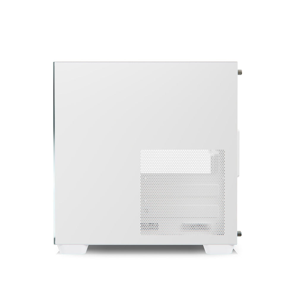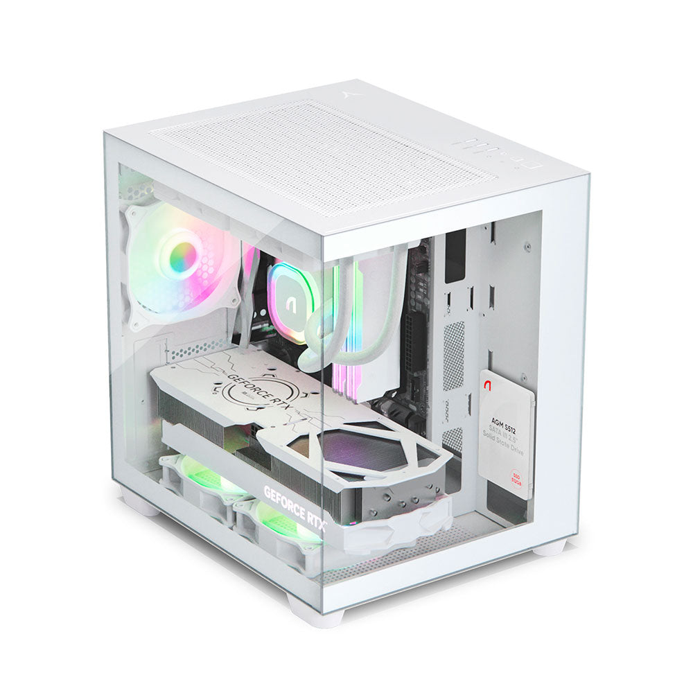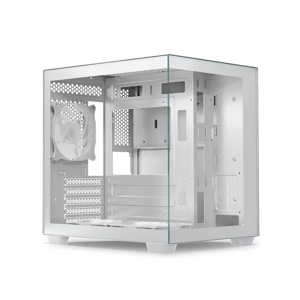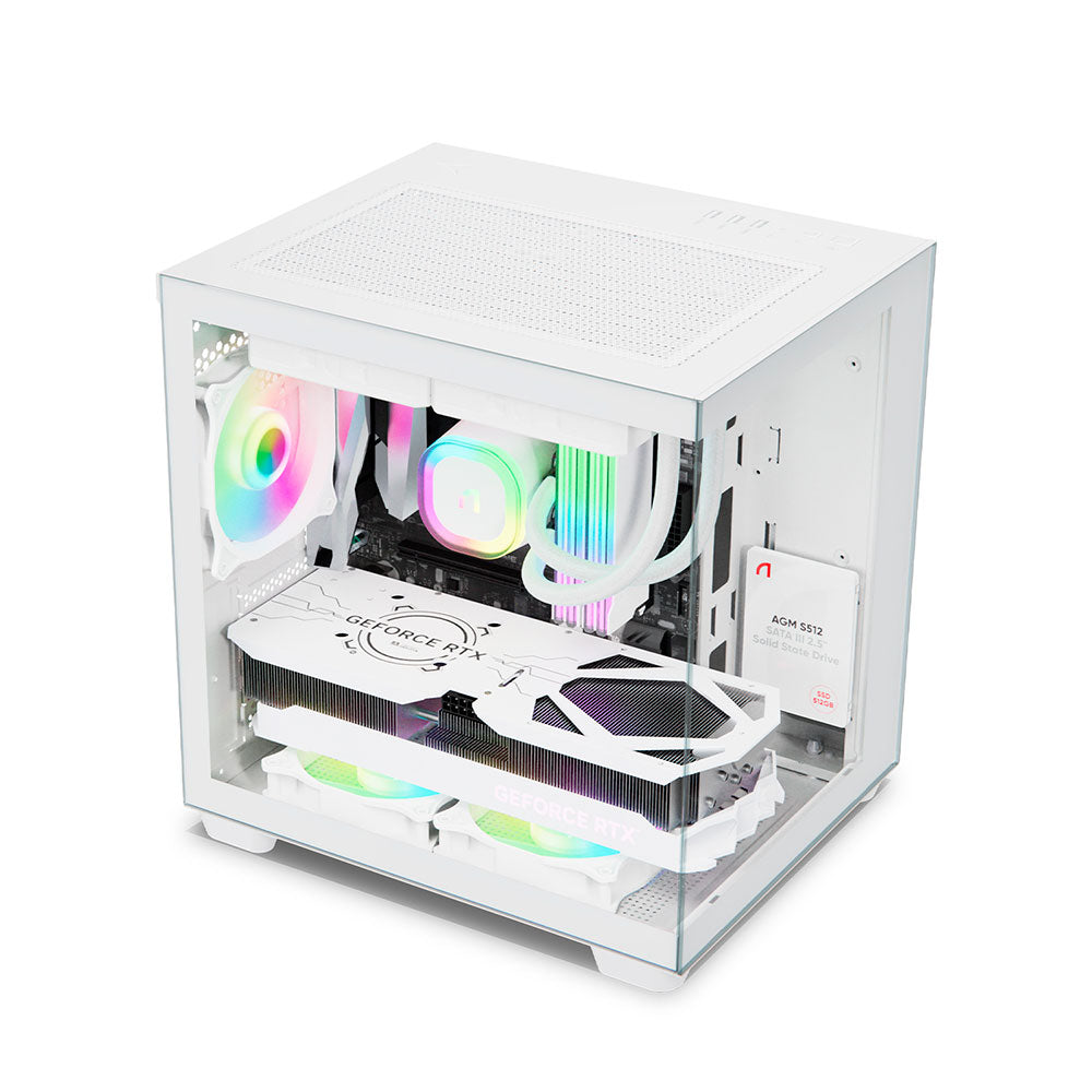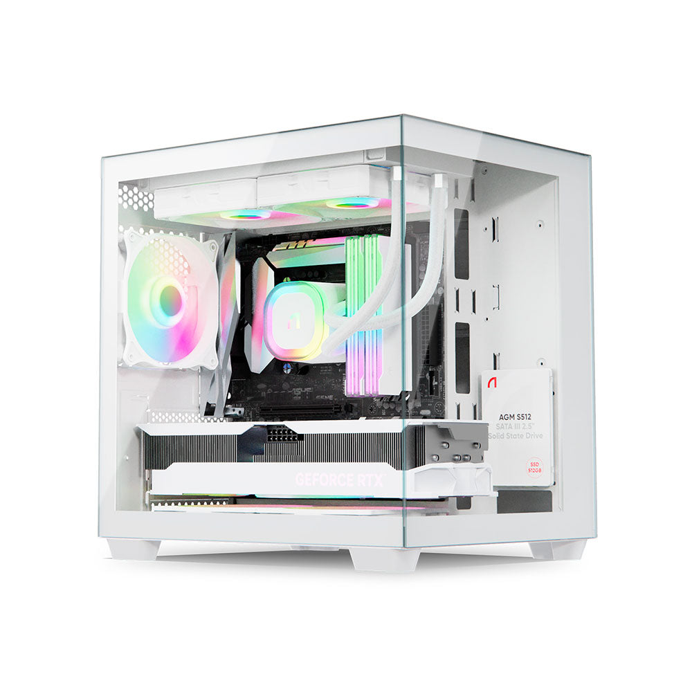Clean white design + tempered glass: Show off your build with a crisp aesthetic and full interior view.